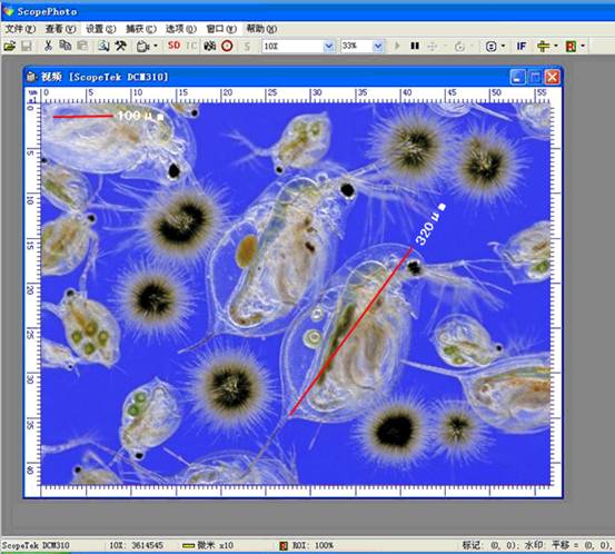 ②顯微圖像顯示標尺、時間,適用于研究人員制作標準定標顯微圖像和發表論文。